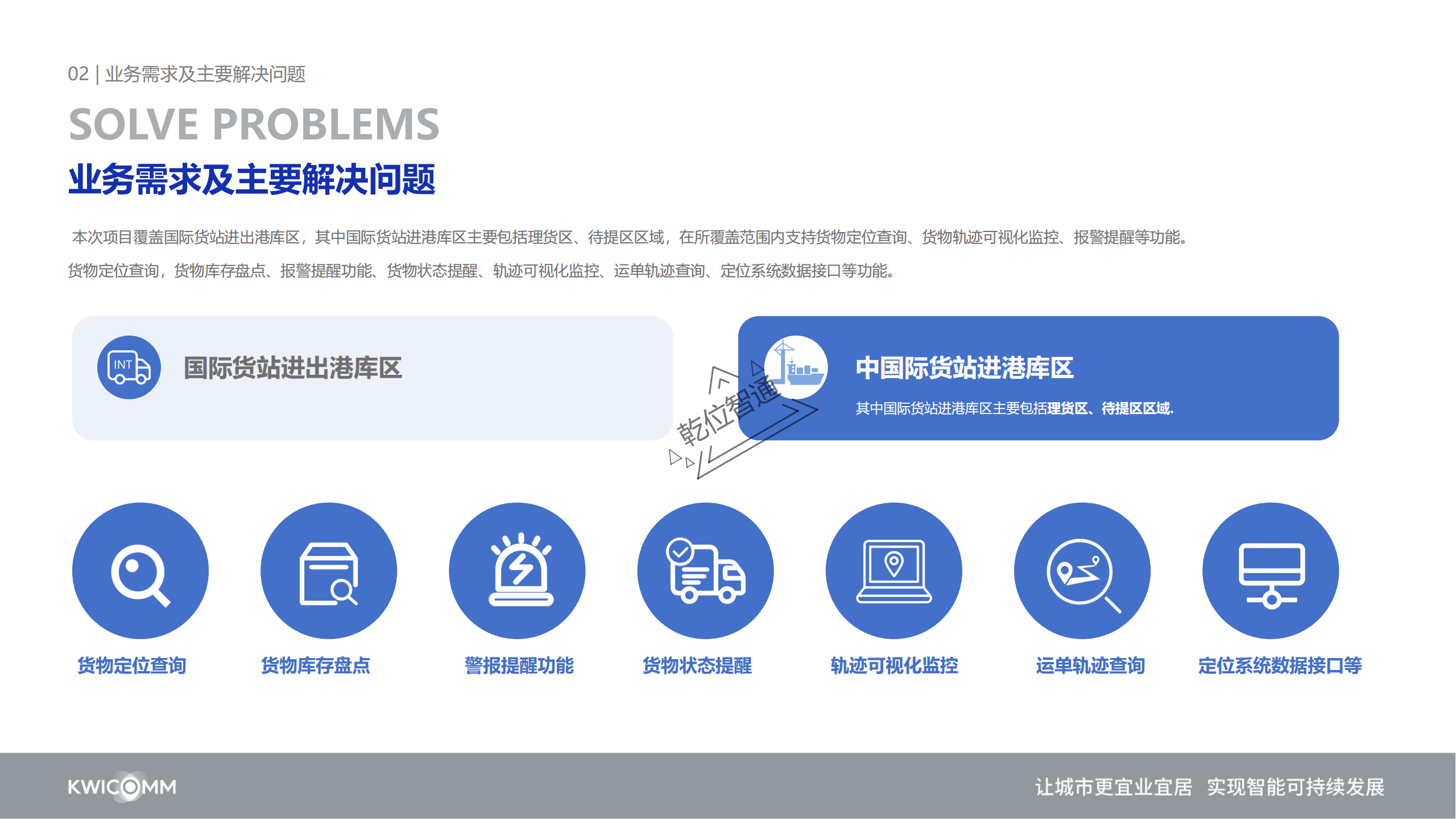 货物定位查询,货物库存盘点、报警提醒功能、货物状态提醒、轨迹可视化监控、运单轨迹查询、定位系统数据接口等功能。